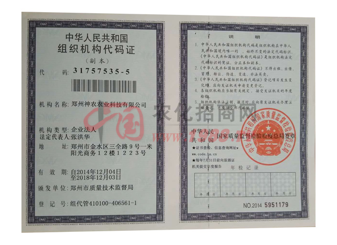 • 組織機構(gòu)代碼證副本組織機構(gòu)代碼證副本